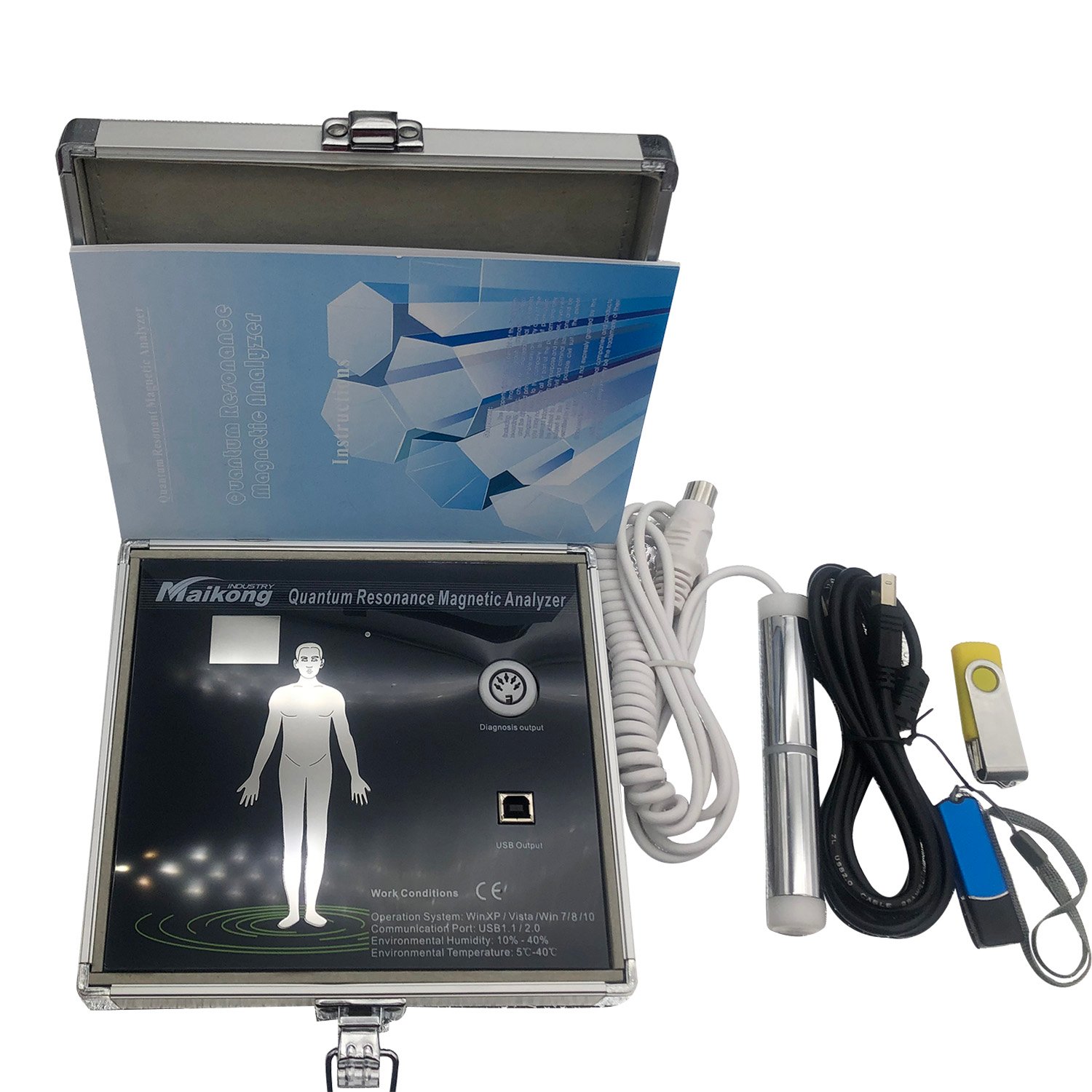 Un analizador cuántico de resonancia magnética es un dispositivo que mide las frecuencias electromagnéticas emitidas por las células del cuerpo humano. Las células sanas y enfermas emiten diferentes señales electromagnéticas. El analizador captura estas señales cuando el paciente sostiene un sensor, las amplifica, y las compara con una base de datos de espectros de resonancia estándar para generar 53 informes de salud en aproximadamente un minuto.